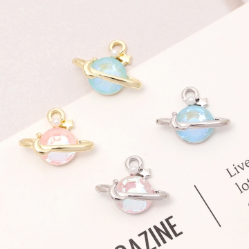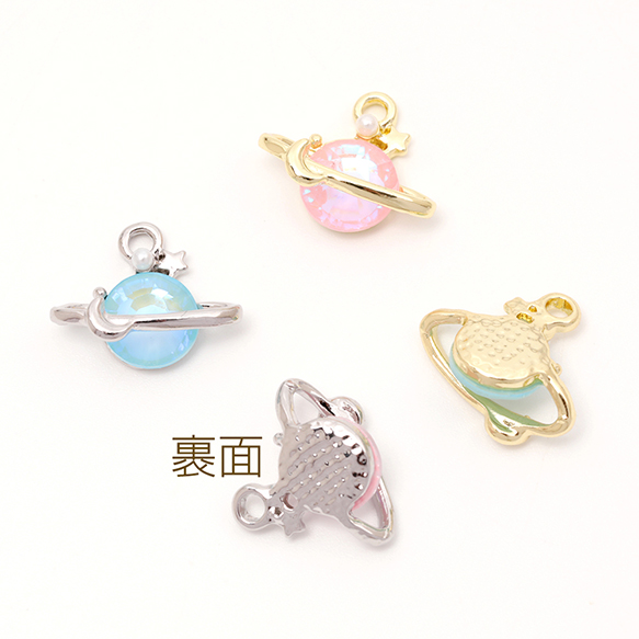 土星チャーム 土星樹脂チャーム 立体土星チャーム 宇宙チャーム 1カン付き 樹脂製 約12×15mm (2ヶ)