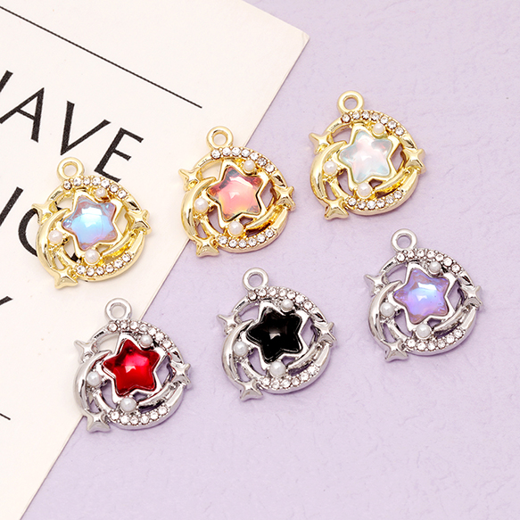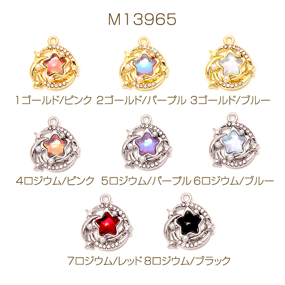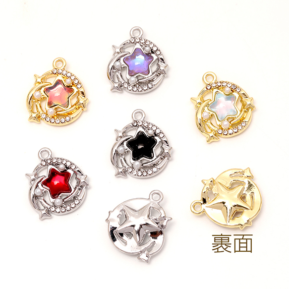 スターチャーム 星チャーム ラウンド型 ジルコニアストーン付き 1カン付き 約16×19mm (2ヶ)