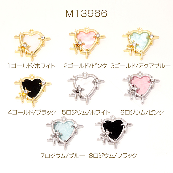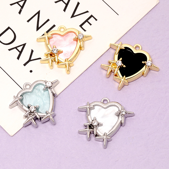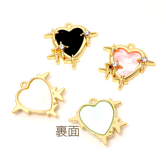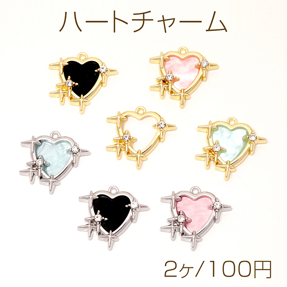 ハートチャーム ミニ星 六芒星 スター装飾 樹脂ストーン付き 1カン付き 約23×24mm (2ヶ)