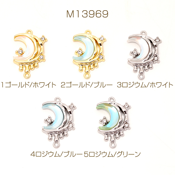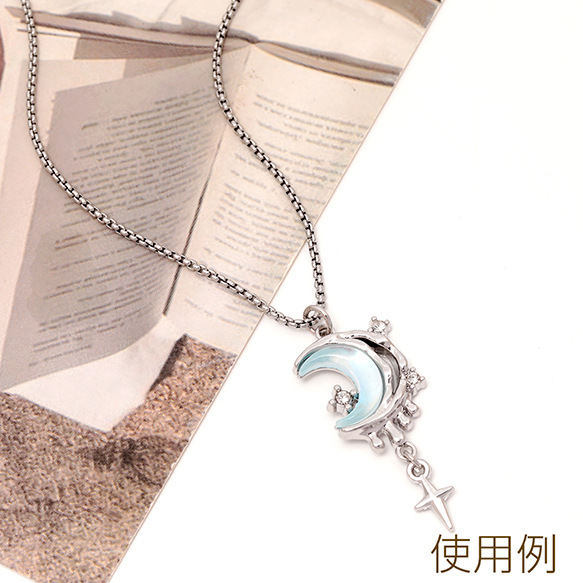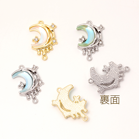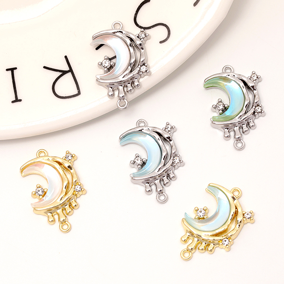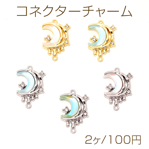 コネクターチャーム ジョイントパーツ 立体月チャーム ストーン付き 上下2カン付き 約16×24mm (2ヶ)