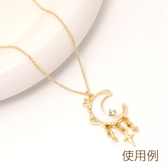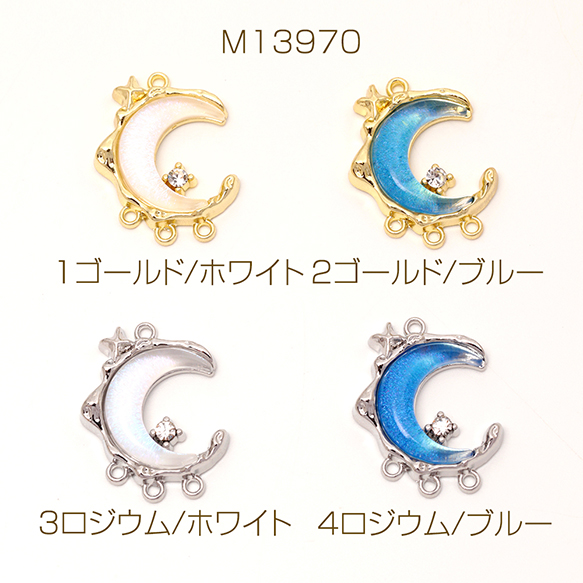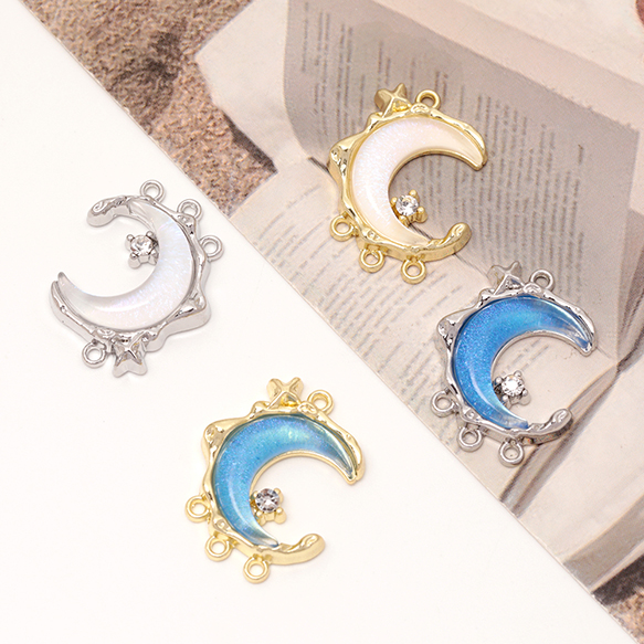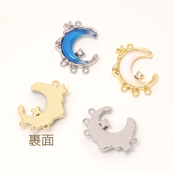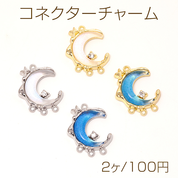 コネクターチャーム ジョイントパーツ 立体月チャーム ストーン付き 上下4カン付き 約18×24mm (2ヶ)