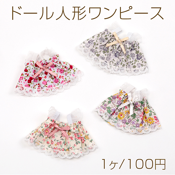 ドール人形ワンピース モール人形服 ミニドールドレス モールド―ル服 ぬいぐるみ服 ミニワンピース 花柄プリント生地 (1着)