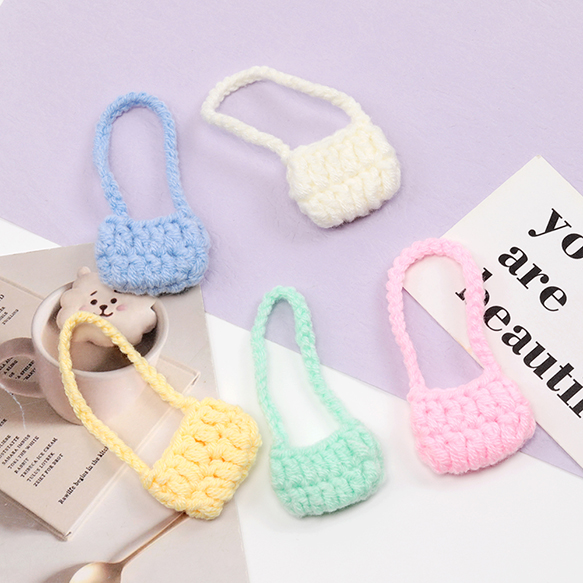 ドール用ニットバッグ モールドール人形バッグ ミニドール手編みバッグ ぬいぐるみ用ミニショルダーバッグ 約3×8cm (1個)