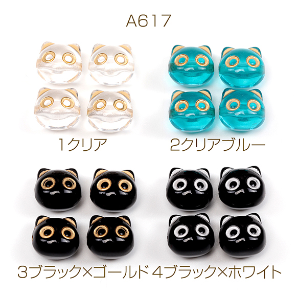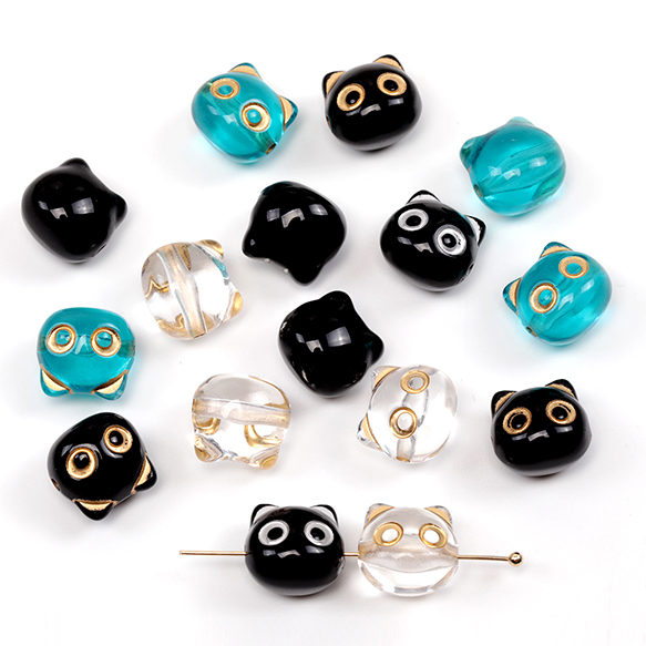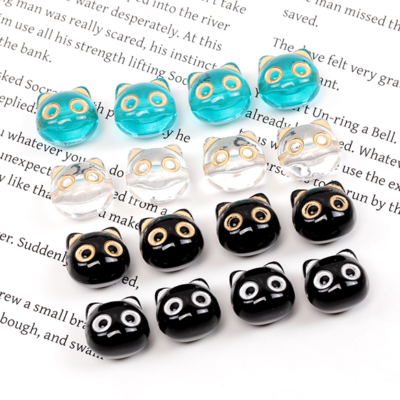 アクリルビーズ 猫型アクリルビーズ アンティーク調ビーズ 猫の顔ビーズ 横穴 約12×13mm(20ケ)