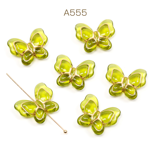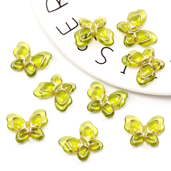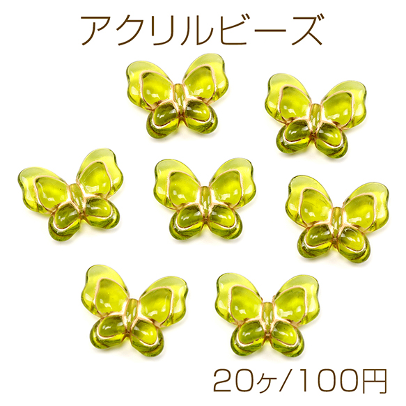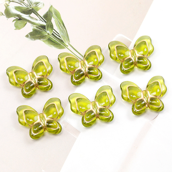 アクリルビーズ 蝶モチーフ アンティーク調ビーズ チェコ風ビーズ ゴールドライン入り 縦穴 約17×20mm(20ケ)