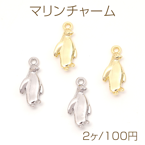 マリンチャーム ペンギンモチーフ 海の生き物チャーム 立体メタルチャーム 1カン 約10×23mm (2ヶ)