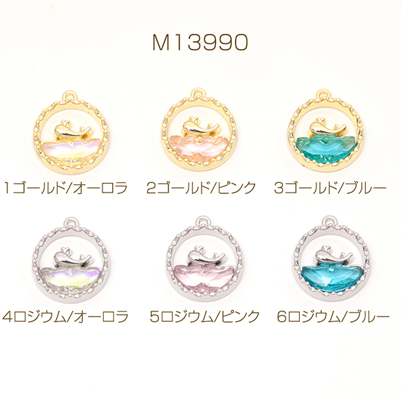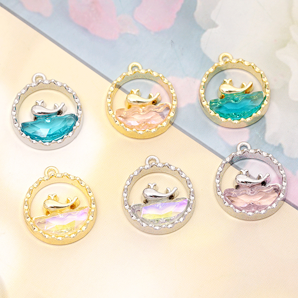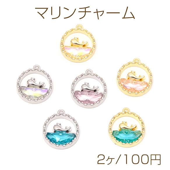 マリンチャーム クジラモチーフ 海の生き物チャーム ガラスチャーム ラウンド型 1カン 約16×18mm (2ヶ)