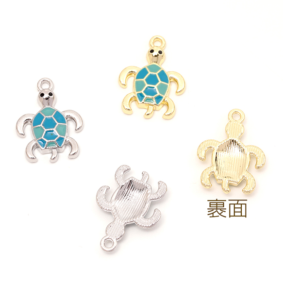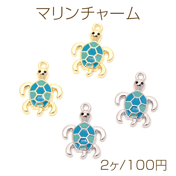 マリンチャーム 海亀モチーフ 海の生き物チャーム メタルエポチャーム 1カン 約12×12mm (2ヶ)