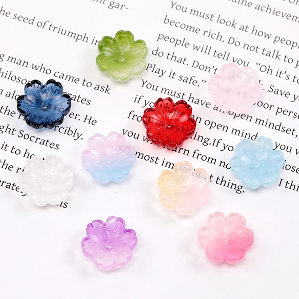 フラワーガラスビーズ 桜 チェコ風ガラスビーズ 花 フラワービーズ ガラスフラワーパーツ 穴あり 約14mm (20ヶ)