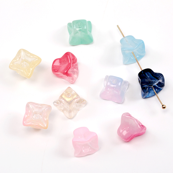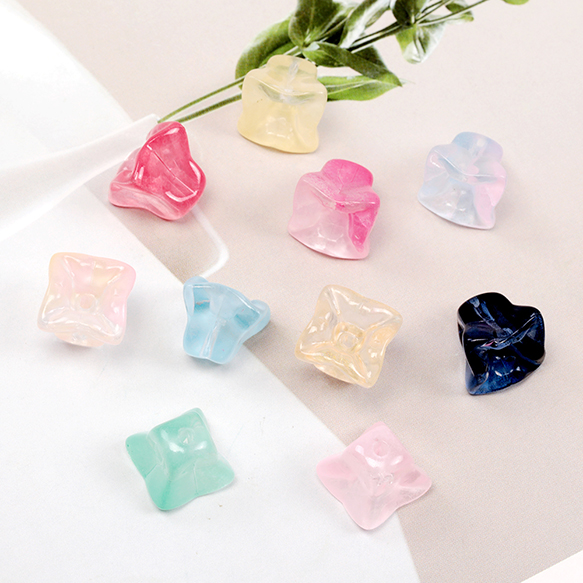 フラワーガラスビーズ トランペット チェコ風ガラスビーズ フラワービーズ 花ビーズ 穴あり 約10×11mm (20ヶ)