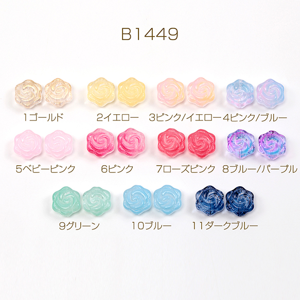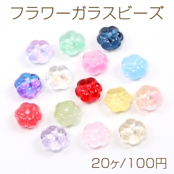 フラワーガラスビーズ バラモチーフ チェコ風ガラスビーズ フラワービーズ 薔薇ビーズ 縦穴 約16mm (20ヶ)