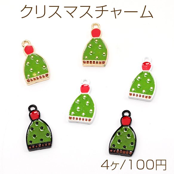 クリスマスチャーム 帽子 ニット帽モチーフ 立体帽子チャーム エポチャーム 1カン付き 約9×16mm (4ヶ)