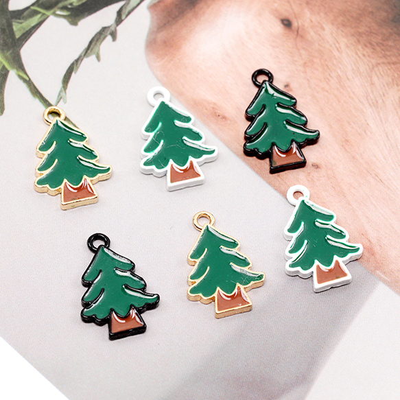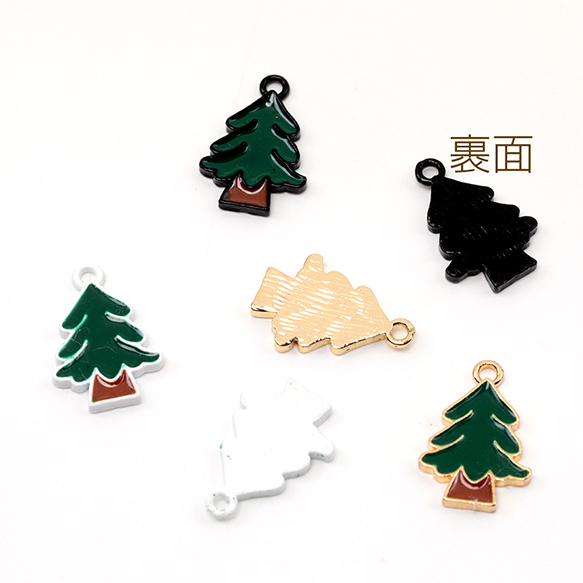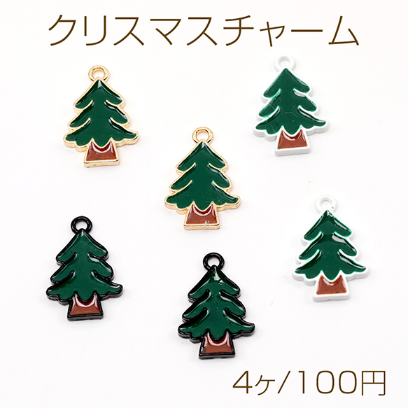 クリスマスチャーム クリスマスツリーモチーフ 立体ツリーチャーム エポ木チャーム 1カン付き 約11×16mm (4ヶ)