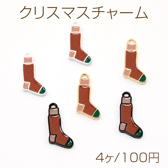 クリスマスチャーム 靴下モチーフ 立体靴下チャーム エポソックスチャーム 1カン付き 約8×17mm (4ヶ)