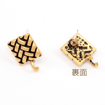 デザインピアス アンティーク調ポストピアス スクエア型ピアス 下カンあり キャッチ付き 約10×10mm 1ペア