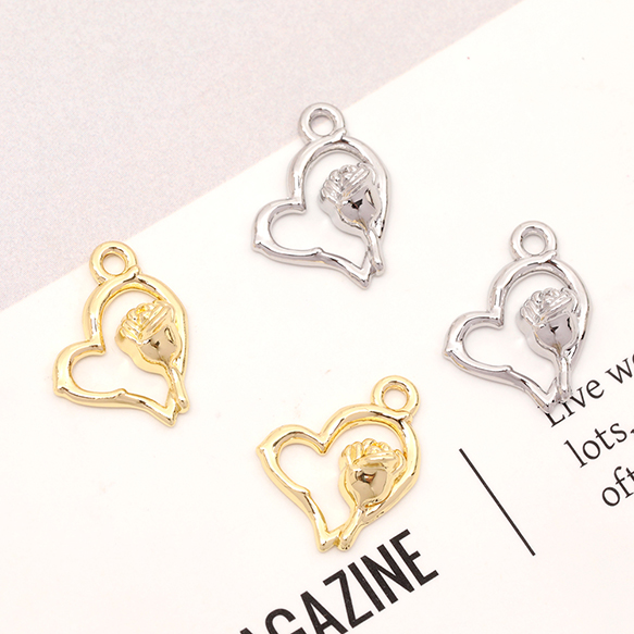 メタルチャーム ハートチャーム ハートフレームチャーム バラ 薔薇装飾 1カン付き 約12×16mm (4ヶ)