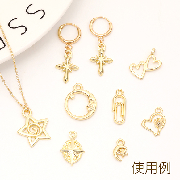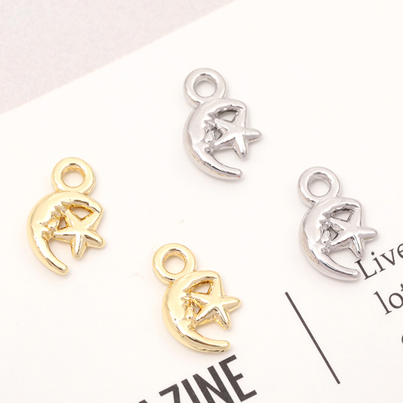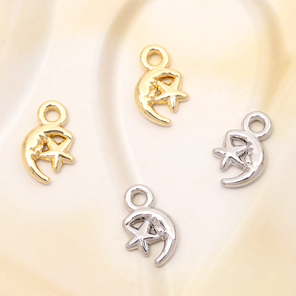 メタルチャーム 星月チャーム スター ムーンチャーム 宇宙系チャーム 1カン付き 約7×12mm (4ヶ)
