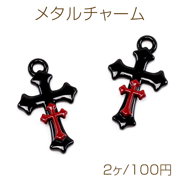 メタルチャーム 塗装 ゴシック風 メタルクロスチャーム 立体十字架チャーム 1カン付き 約 14×23mm (2ヶ)