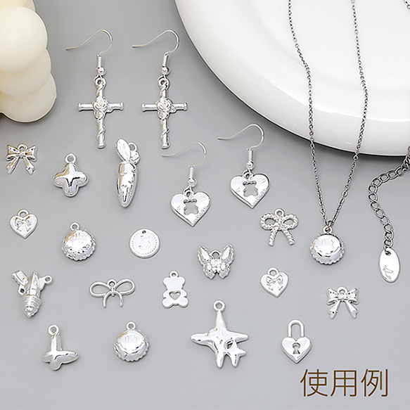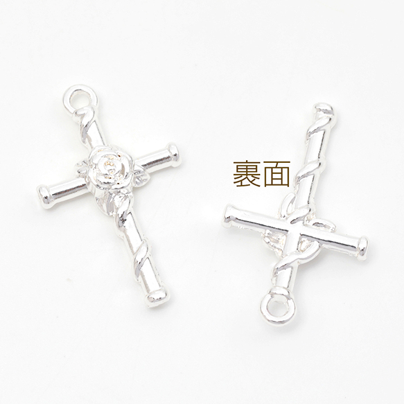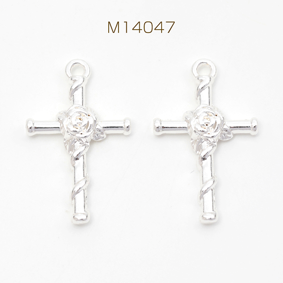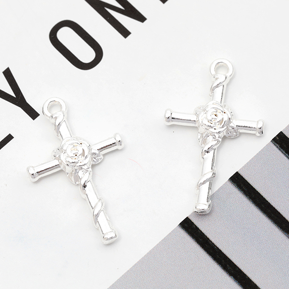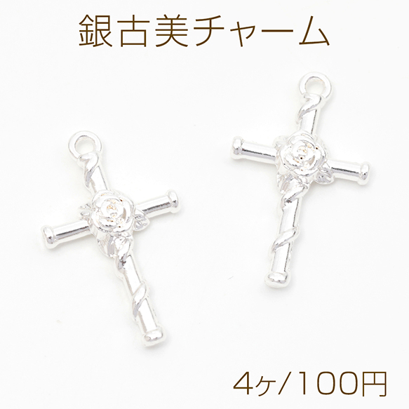 銀古美チャーム シルバー調チャーム 十字架モチーフ クロスチャーム 1カン付き 約15×26mm (4ヶ)