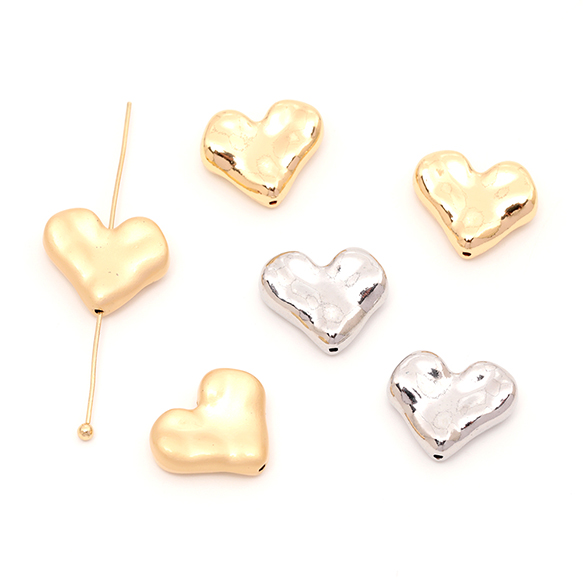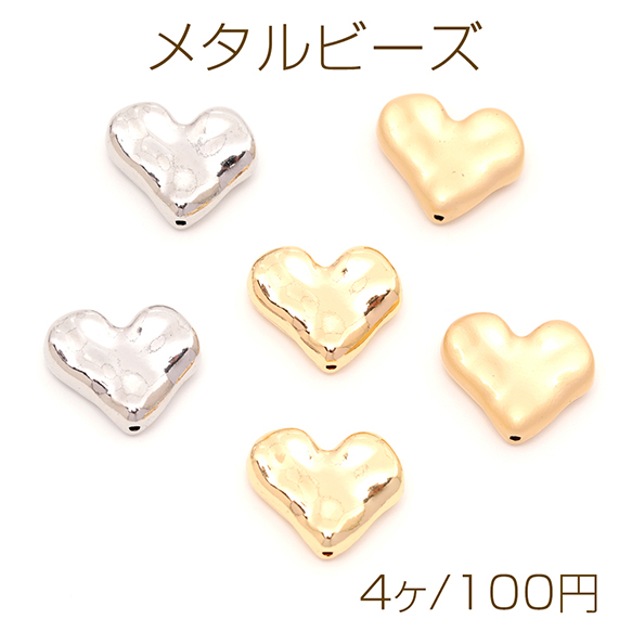 メタルビーズ 立体ハートモチーフ ハート型ビーズ 合金製 3色 縦穴 約13×16mm(4ケ)