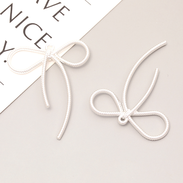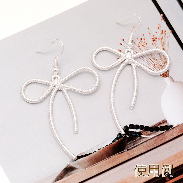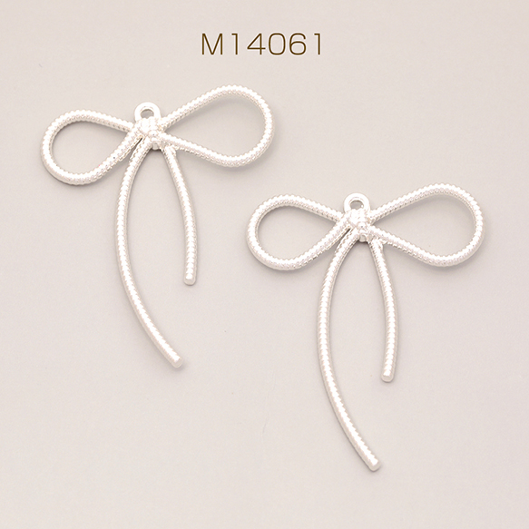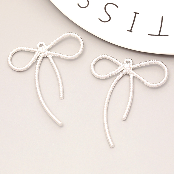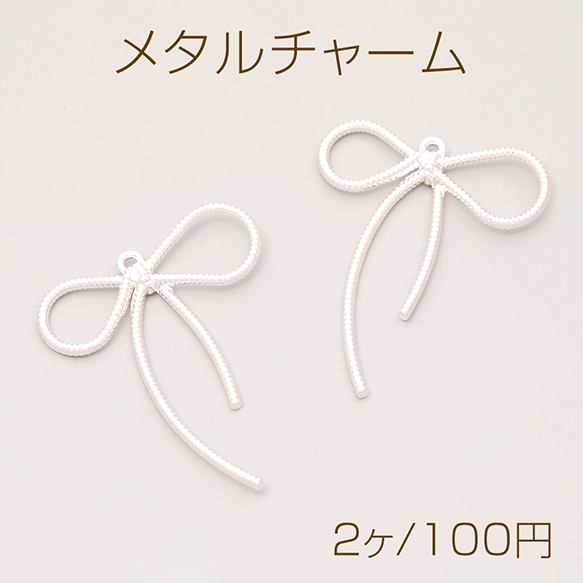 メタルチャーム リボンモチーフ ロングリボンチャーム シルバー調 合金製 1カン付き 約36×45mm(2ケ)