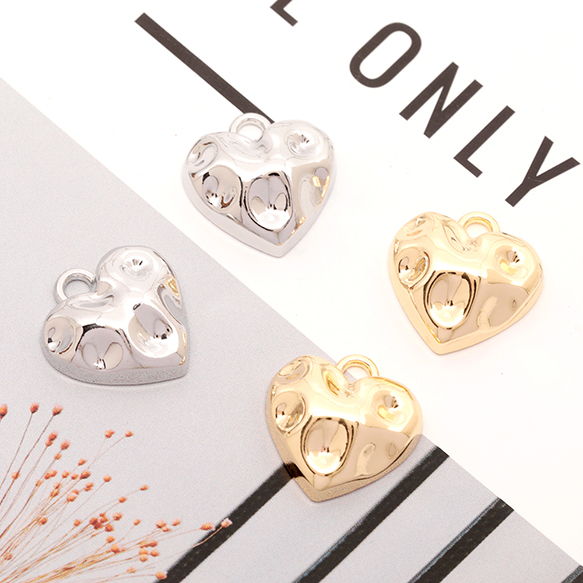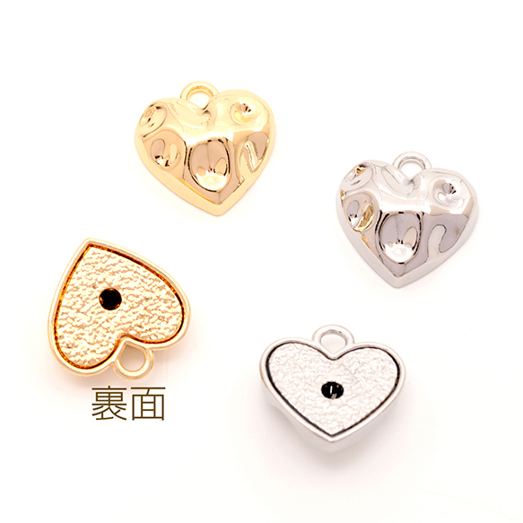メタルハートチャーム ハートモチーフ 凸凹ハートチャーム 2種類 1カン付き 約18×18mm(2ケ)