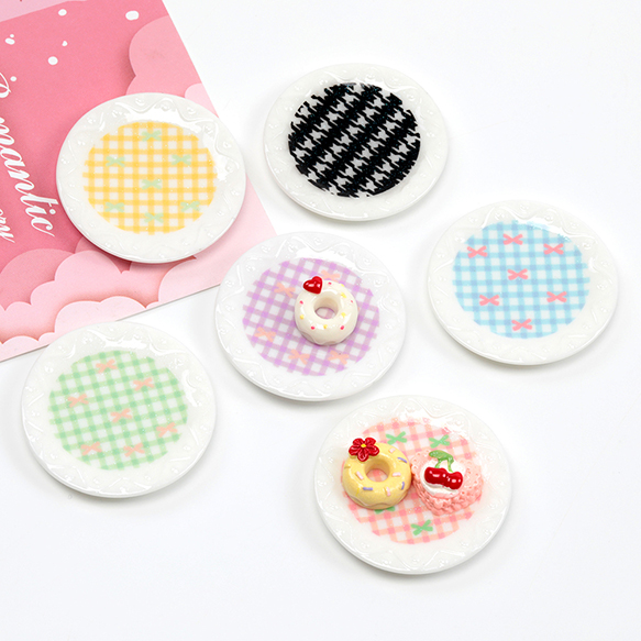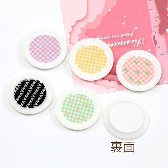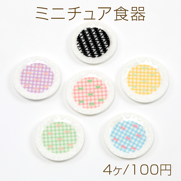 ミニチュア食器 ミニチュアお皿 ミニチュアプレート 模様あり 樹脂貼付けパーツ デコパーツ 約45mm (4ヶ)