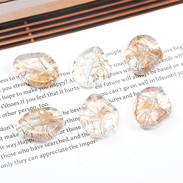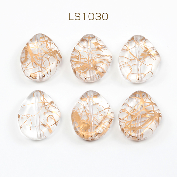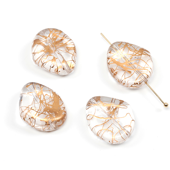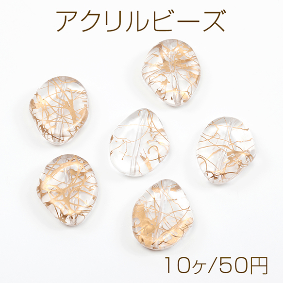 アクリルビーズ フラットアクリルビーズ ゴールドライン クリアビーズ 通し穴あり オーバル型 約19×23mm (10ヶ)