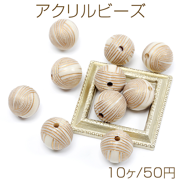 アクリルビーズ 丸玉 アンティーク調ビーズ ゴールドライン 通し穴あり 約16mm (10ヶ)