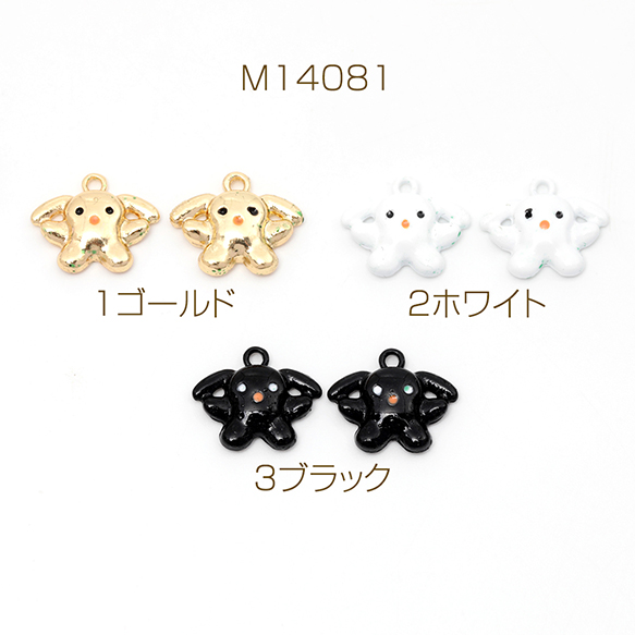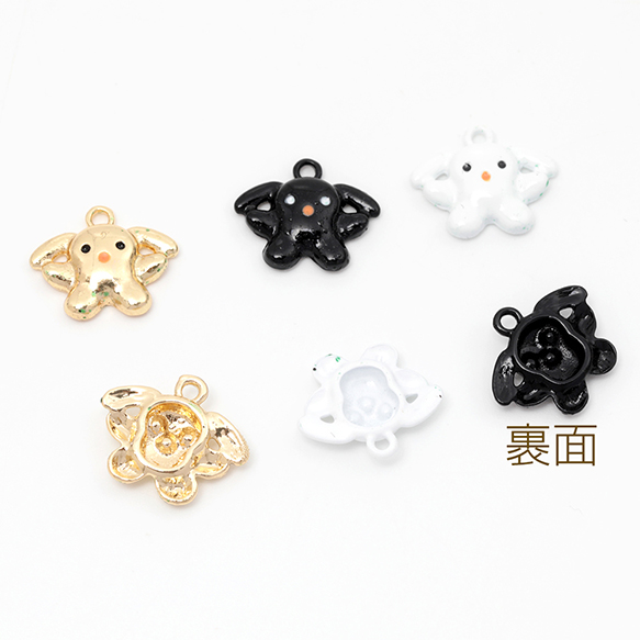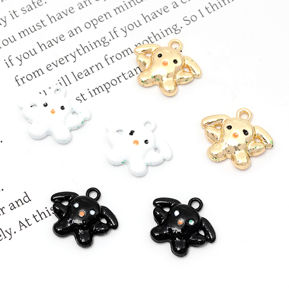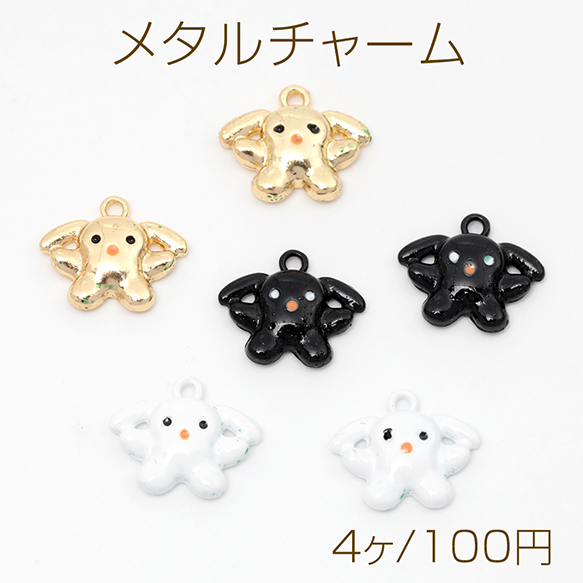 メタルチャーム エポ塗装加工 うさぎモチーフ 兔チャーム アニマルチャーム 全3色 1カン付き 約13×16mm (4ヶ)
