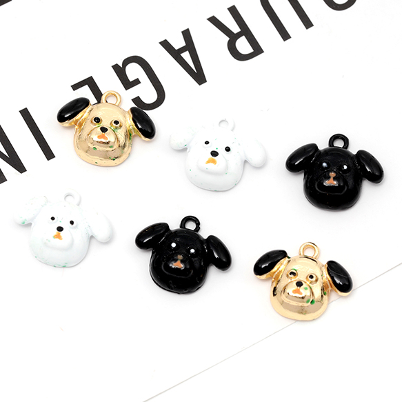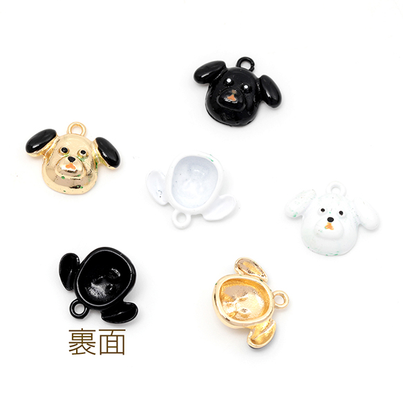 メタルチャーム エポ塗装加工 犬モチーフ いぬチャーム ドッグ アニマルチャーム 全3色 1カン付き 約12×15mm (4ヶ)