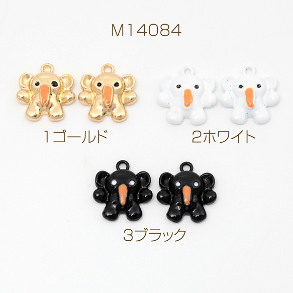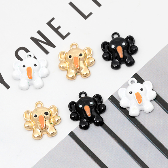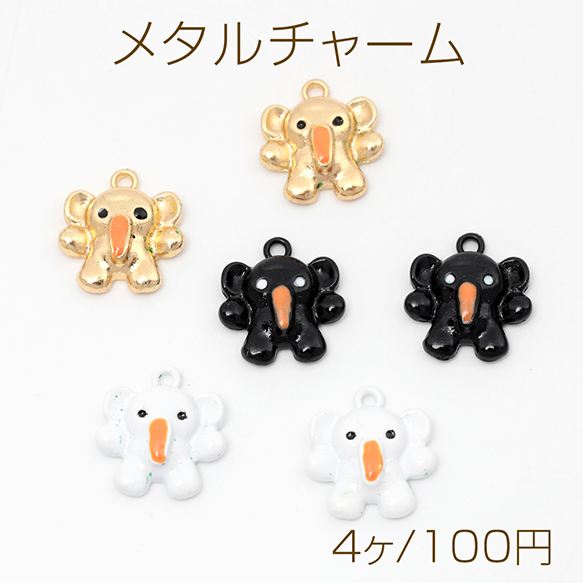 メタルチャーム エポ塗装加工 象モチーフ 象さんチャーム ゾウ アニマルチャーム 全3色 1カン付き 約14×15mm (4ヶ)