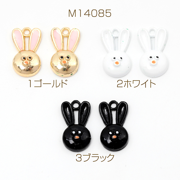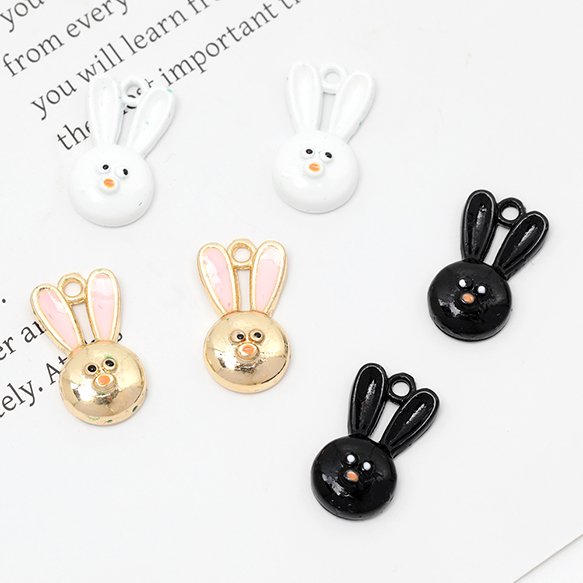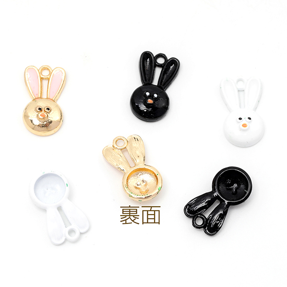 メタルチャーム エポ塗装加工 兔モチーフ うさぎチャーム ウサギ アニマルチャーム 全3色 1カン付き 約9×16mm (4ヶ)