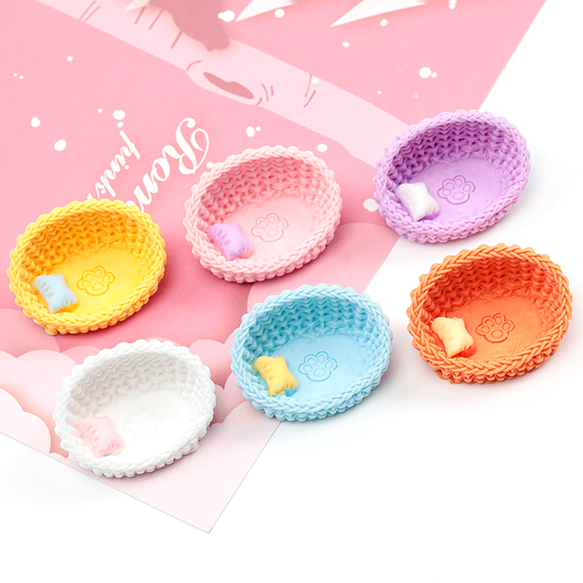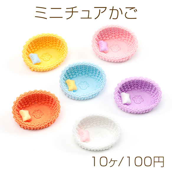 ミニチュアかご 樹脂製 籠 手編み調かご ミニチュアバスケット シルバニアサイズ 全6色 ランダム発送 (10ヶ)