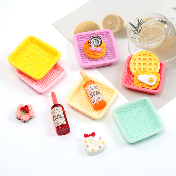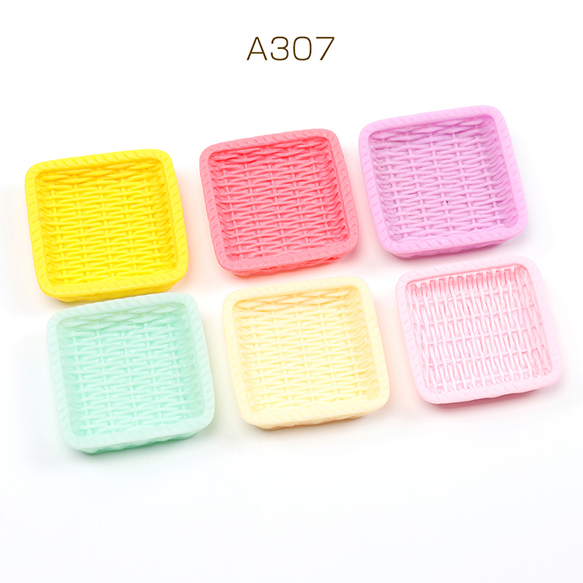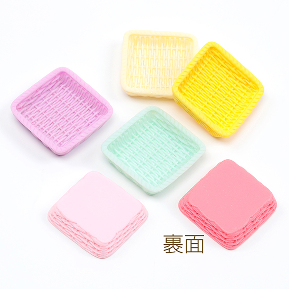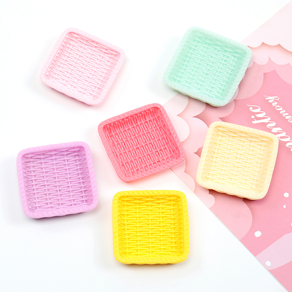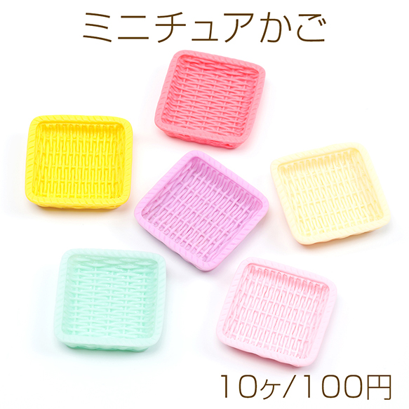 ミニチュアかご 樹脂製 手編み調かご ミニチュアバスケット シルバニアサイズ スクエア型 全6色 ランダム発送 (10ヶ)