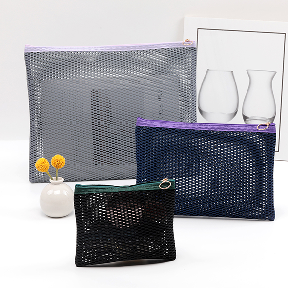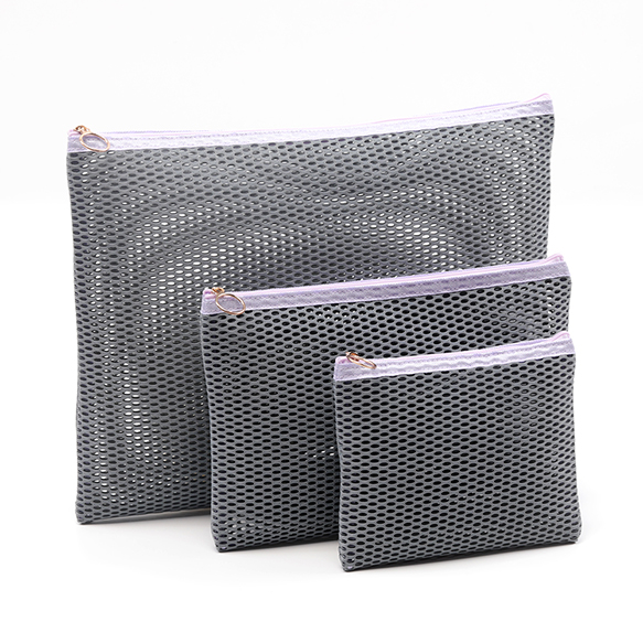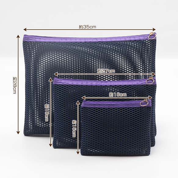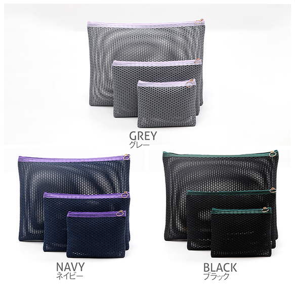 メッシュポーチ3点セット 使い分け便利 フラットメッシュポーチ マルチポーチ 小物入れ カラーファスナー付き (3点セット)
