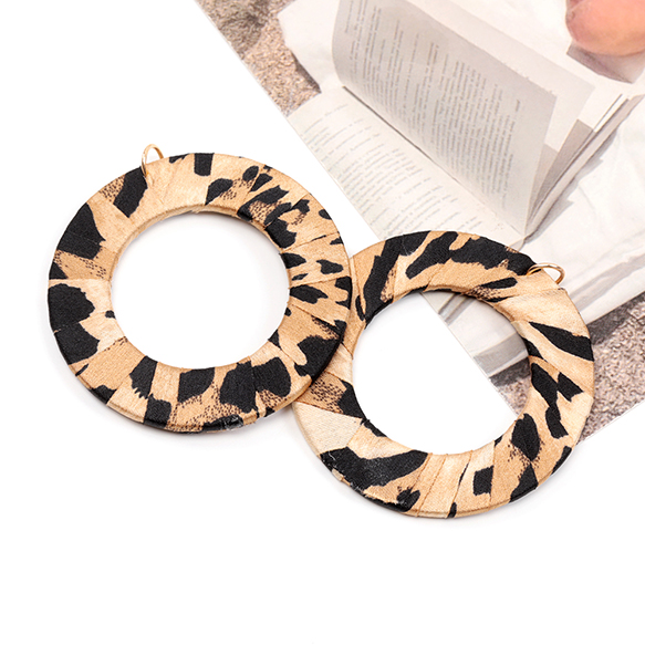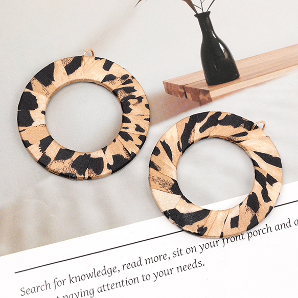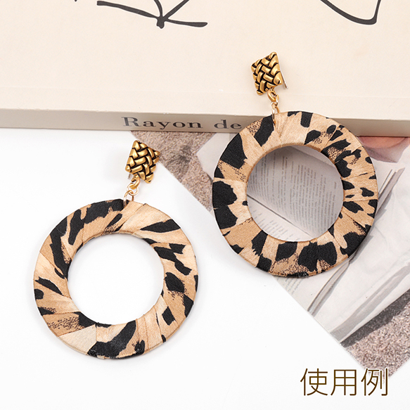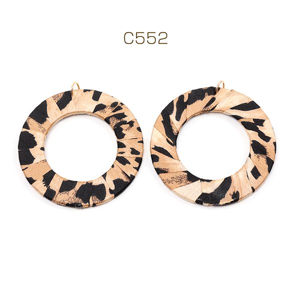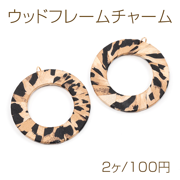 ウッドフレームチャーム レオパード ヒョウ柄 リングフレームチャーム 木製 ラウンド型 1カン付き 約52mm(2ケ)