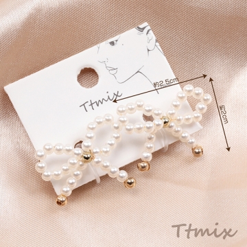 ヒョウ柄リボンピアス ロングリボンピアス ワンタッチフープピアス 簡単装着 完成品(1ペア)