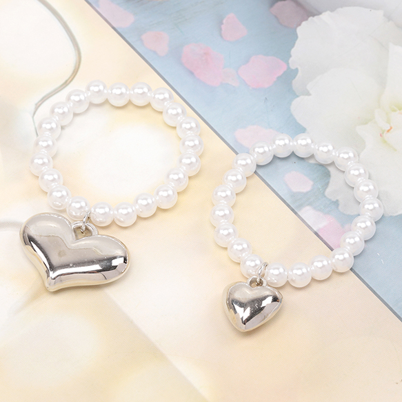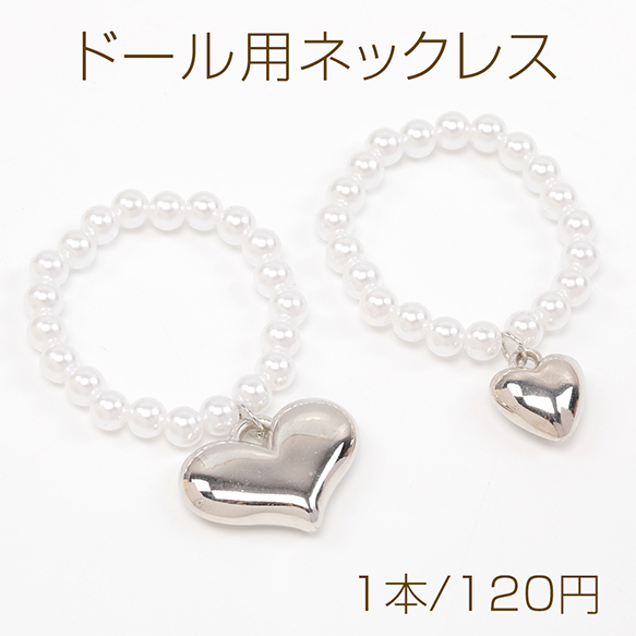 ドール用ネックレス ミニパールネックレス ハートチャーム付き モールドール人形用装飾小物 首飾り 首輪 (1本)
