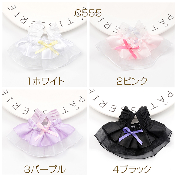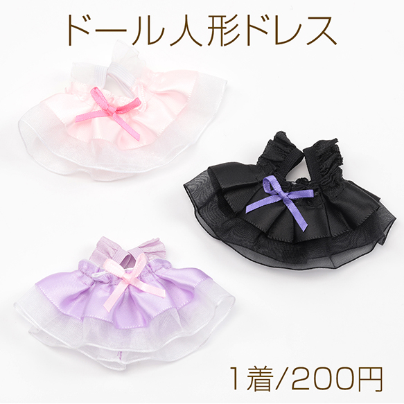 ドール人形ドレス モールド―ル人形用ワンピース サテン オーガンジー素材 ミニリボン付き モールドール人形服 全4色 (1着)