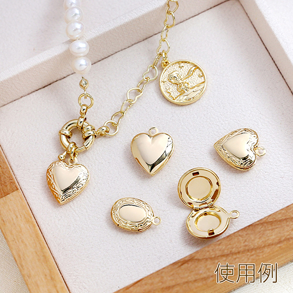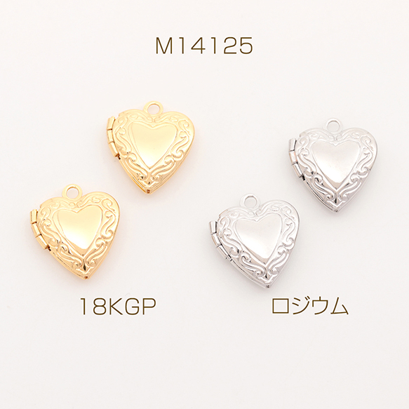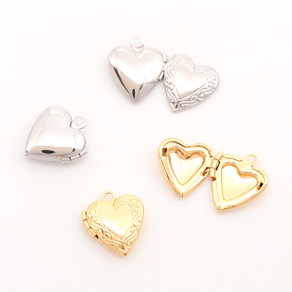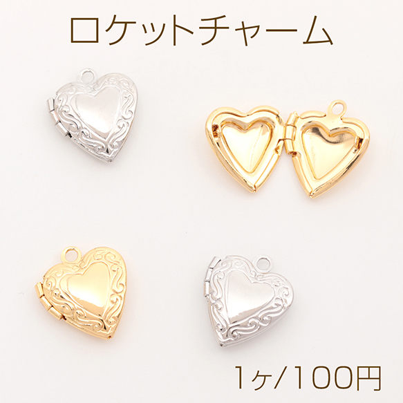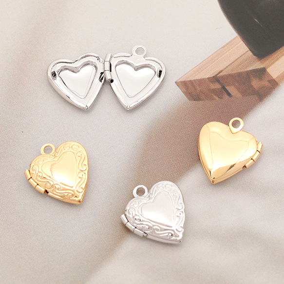 ロケットチャーム アンティーク調ロケットペンダント 写真入れ フォトメモリー ハート型 全2色 約13×16mm (1ケ)