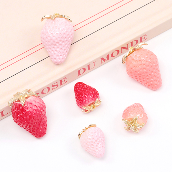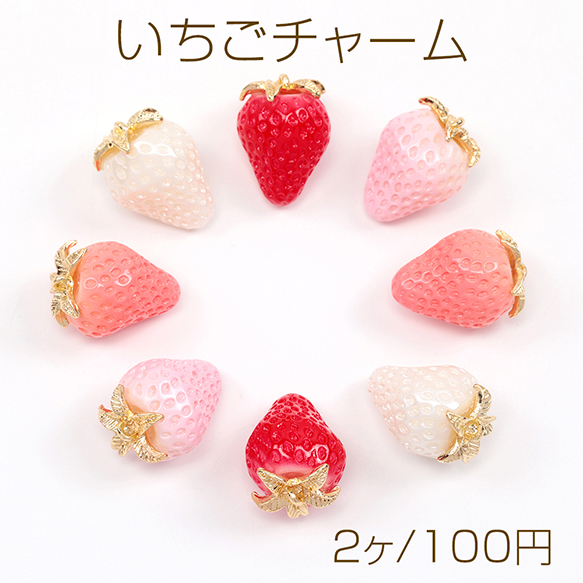 いちごチャーム 樹脂製イチゴチャーム かわいいフルーツチャーム 苺チャーム 約13×18mm(2ヶ)