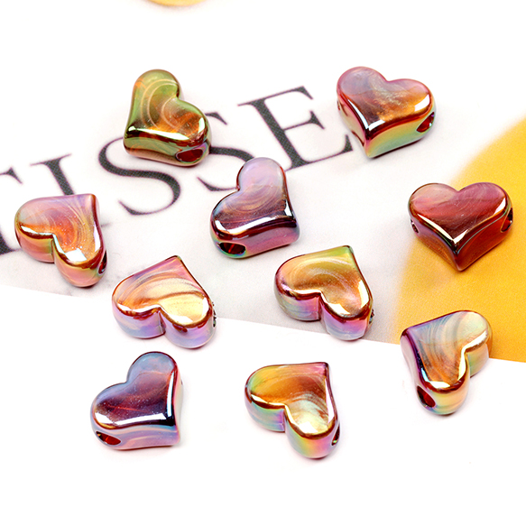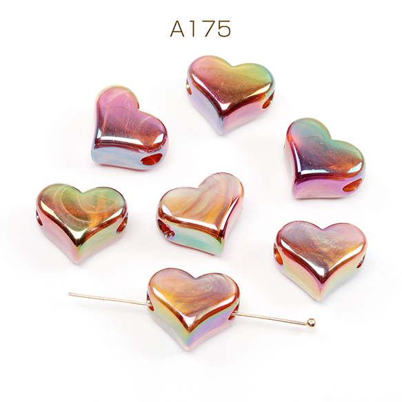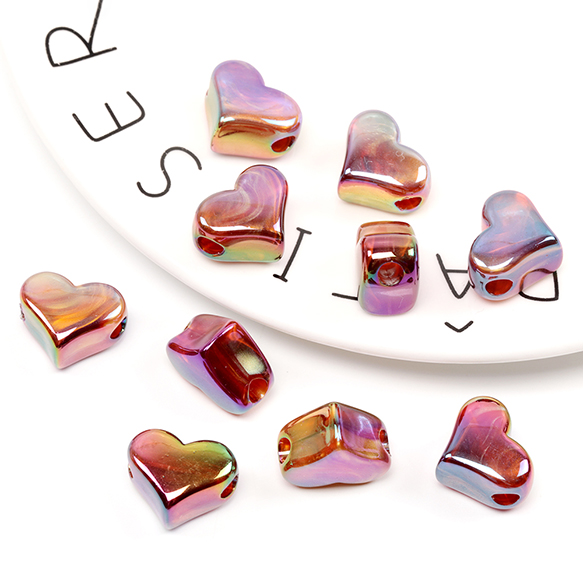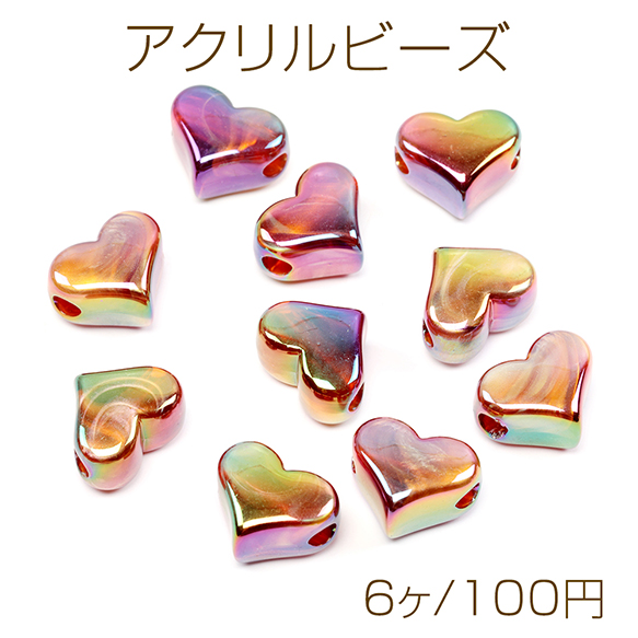 アクリルビーズ ハートビーズ 電気メッキビーズ オーロラ加工 横穴あり 約14×18mm(6ケ)