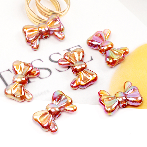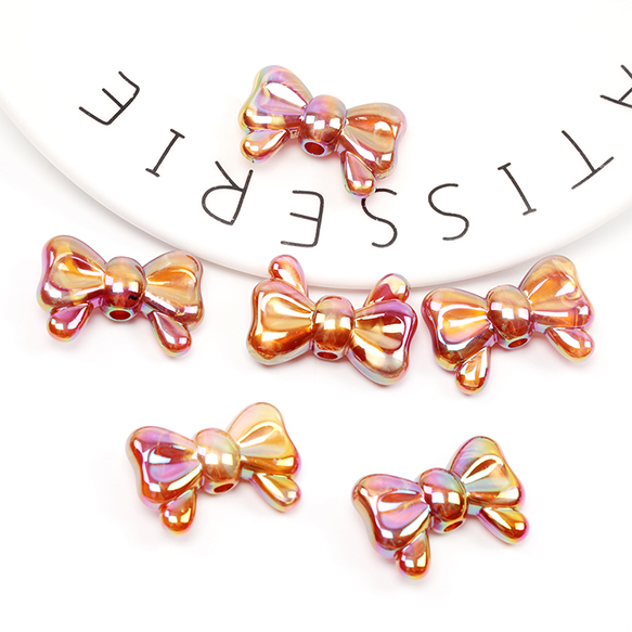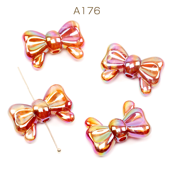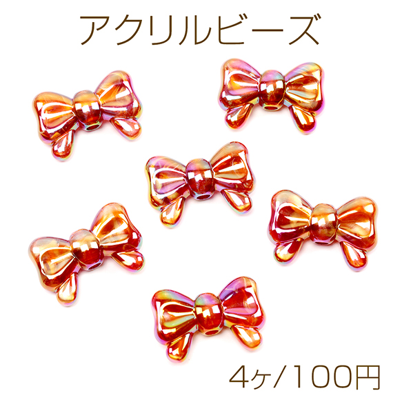 アクリルビーズ リボンビーズ 電気メッキビーズ オーロラ加工 縦穴あり 約20×29mm(4ケ)