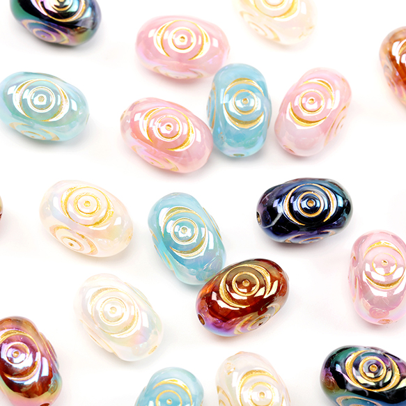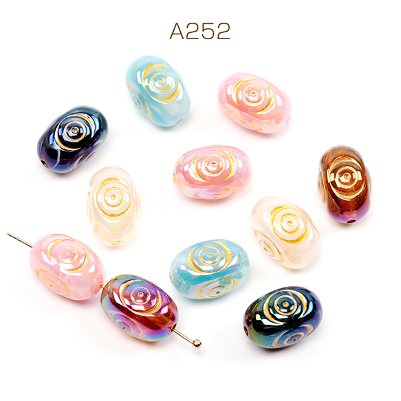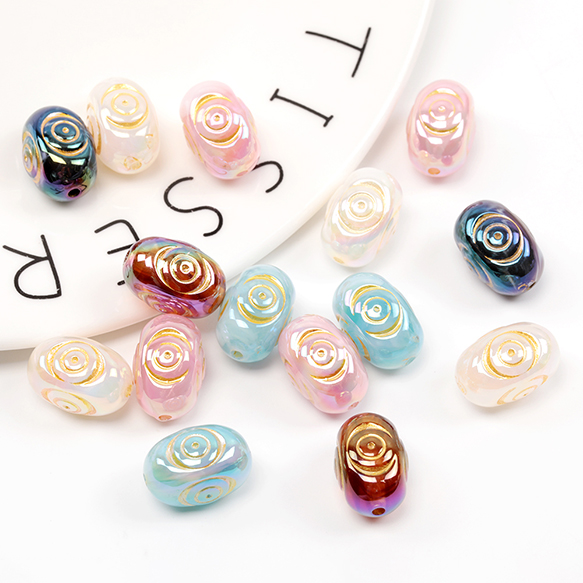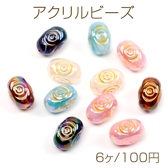 アクリルビーズ アンティーク調ビーズ ゴールドライン模様 オーバル型 カラーランダム発送 約11×16mm(6ケ)