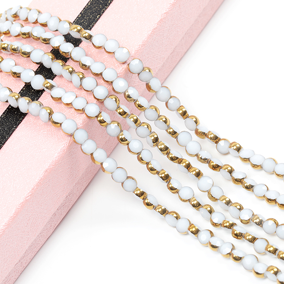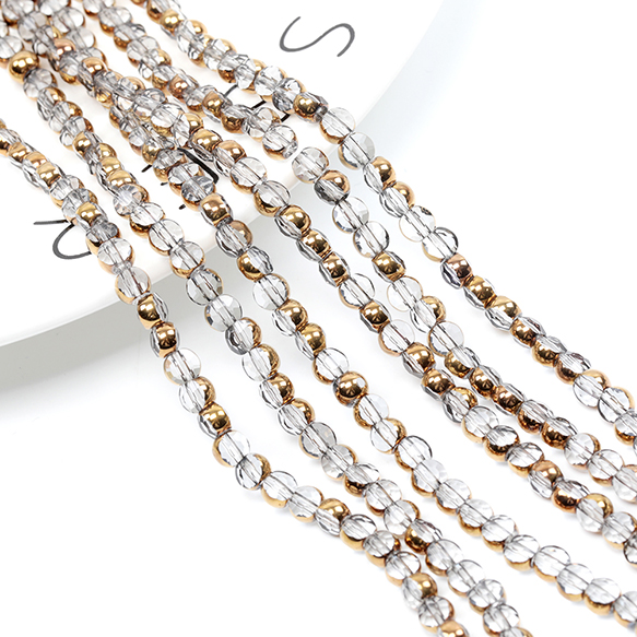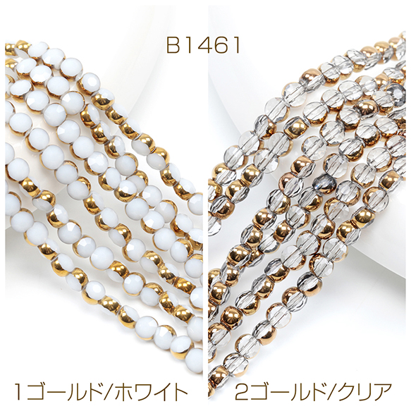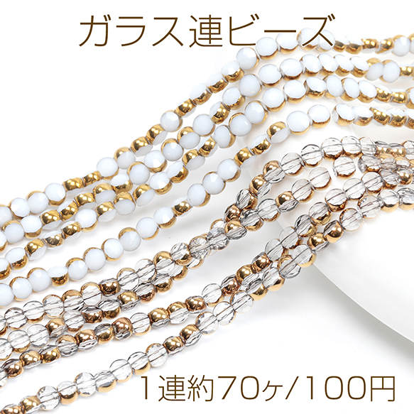 ガラス連ビーズ 5mm ガラスフラットラウンドカットビーズ バイカラー 全7色 通し穴あり 約5mm (1連約70ヶ)