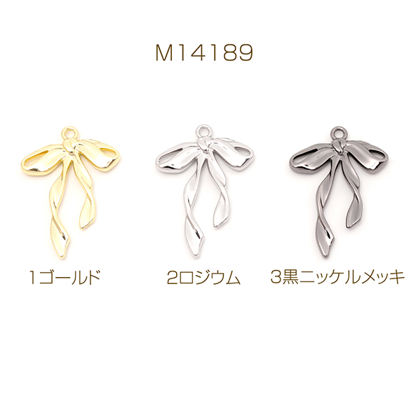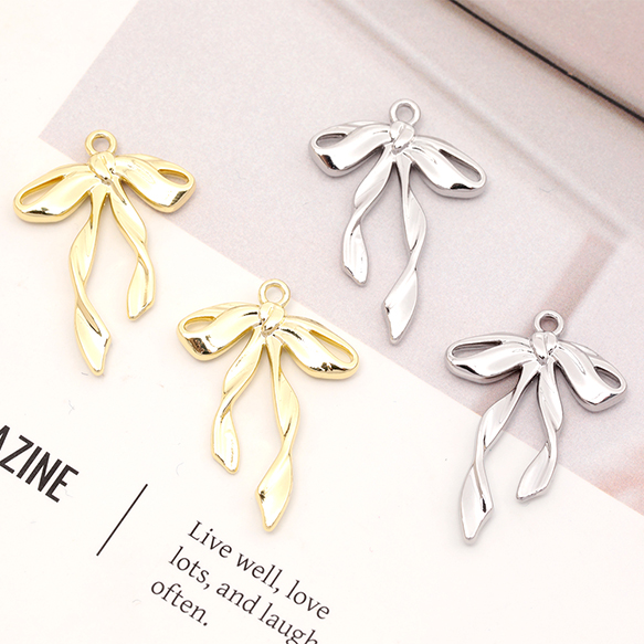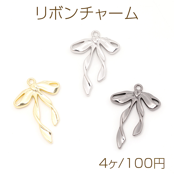 リボンチャーム ゴシック風リボンチャーム りぼんチャーム メタルチャーム 1カン付き 全3色 約21×30mm (4ヶ)