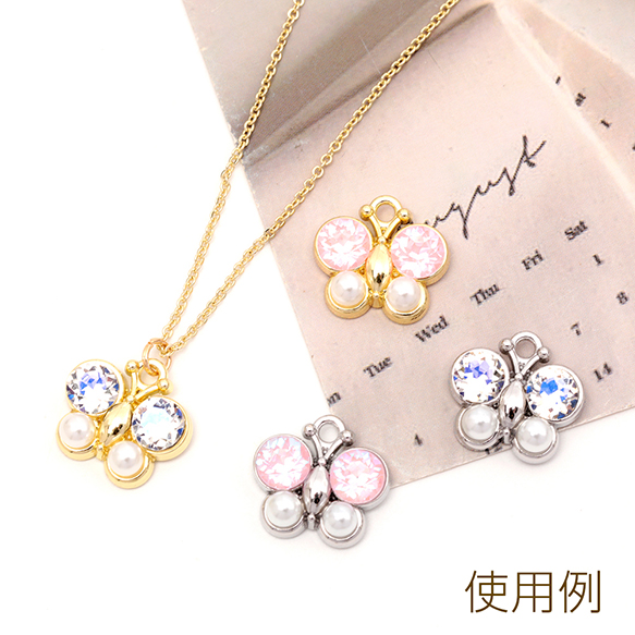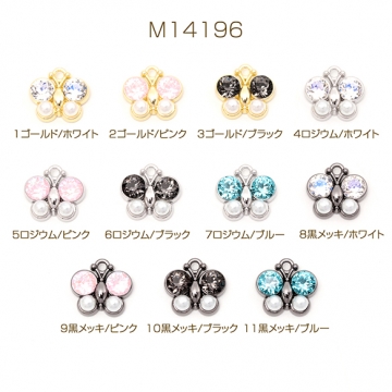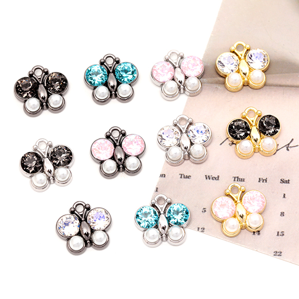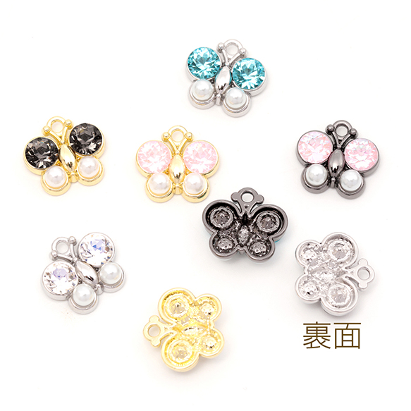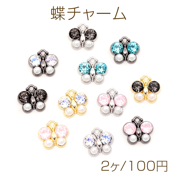 蝶チャーム ガラスストーン付き メタルチャーム バタフライチャーム ちょうチャーム 全11色 約14×15mm (2ヶ)