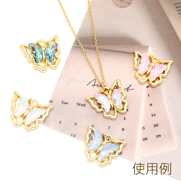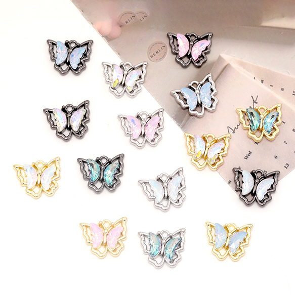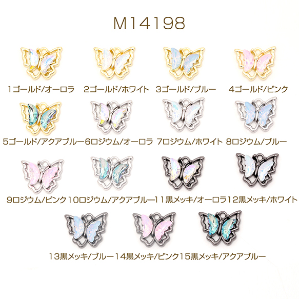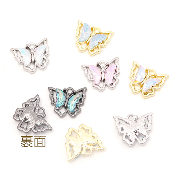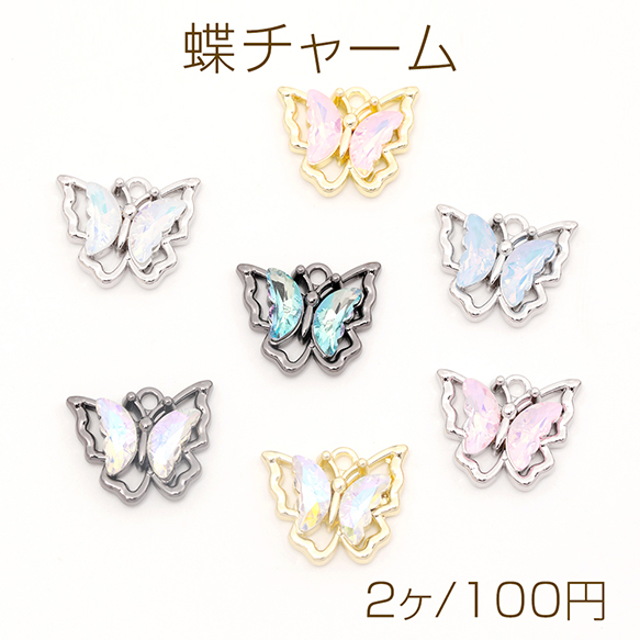 蝶チャーム ガラスストーン付き メタルチャーム バタフライチャーム ちょうチャーム 全15色 約15×19mm (2ヶ)