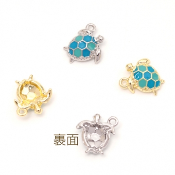 タコチャーム たこ 蛸モチーフ メタルチャーム ガラスストーン付き ハートパーツ 全8色 約15×23mm (2ヶ)